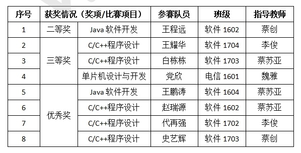 本次大赛取得的优异成绩,离不开学院领导和教务处等相关部门的关心支持,离不开信息学院的高度重视、指导教师的悉心辅导和参赛学生的刻苦训练。通过参与该项比赛,既开阔了学生软件开发创新思维视野,提高了学生动手解决工程问题的能力,也为学生今后从事计算机开发岗位奠定了坚实的基础。