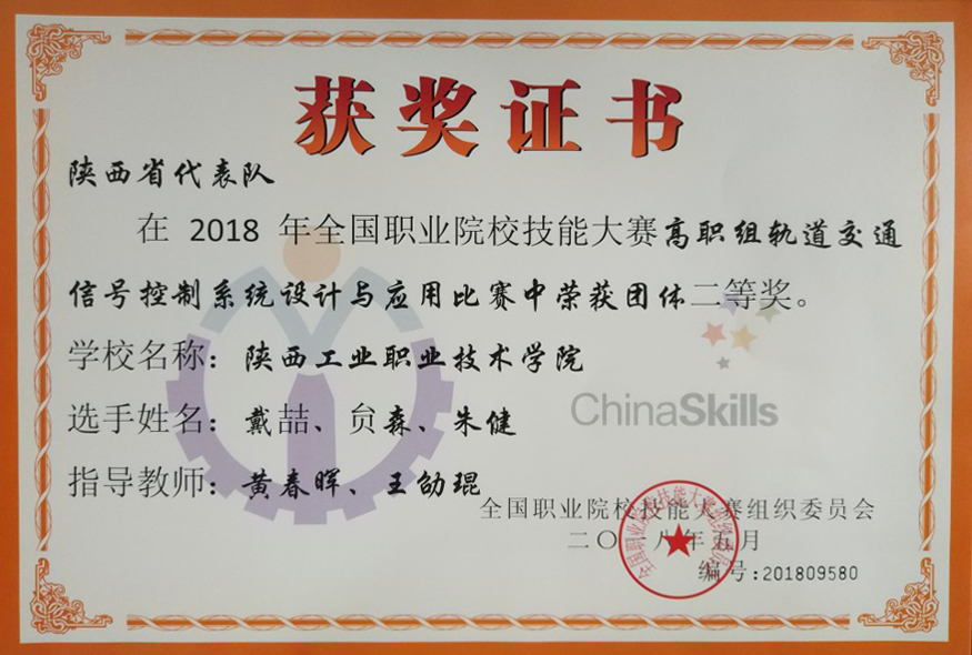 [国赛二等奖]乐游棋牌荣获全国职业院校技能大赛轨道交通信号控制系统设计与应用赛项团体二等奖