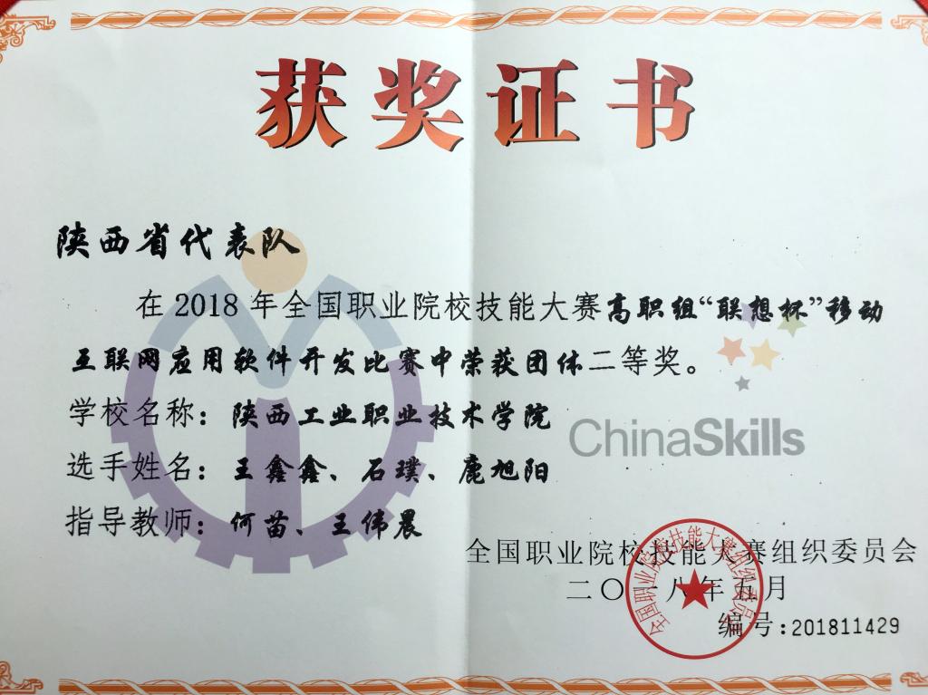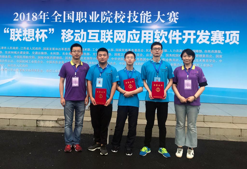 5月22日,2018年全国职业院校技能大赛“移动互联网应用软件开发”赛项比赛在南京落下帷幕。经过一天的激烈角逐,由乐游棋牌信息工程学院教师何苗、王伟晨指导,计应1602班鹿旭阳、软件1602班王鑫鑫和软件1603班石璞三名同学组成的代表队荣获团体二等奖。