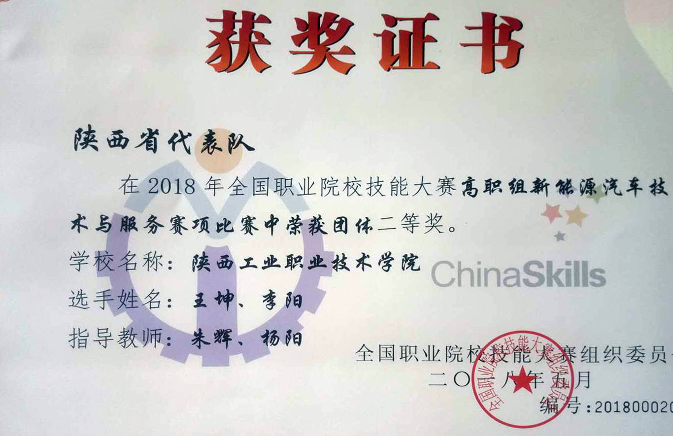 [国赛二等奖]乐游棋牌荣获全国职业院校技能大赛新能源汽车技术与服务赛项团体二等奖