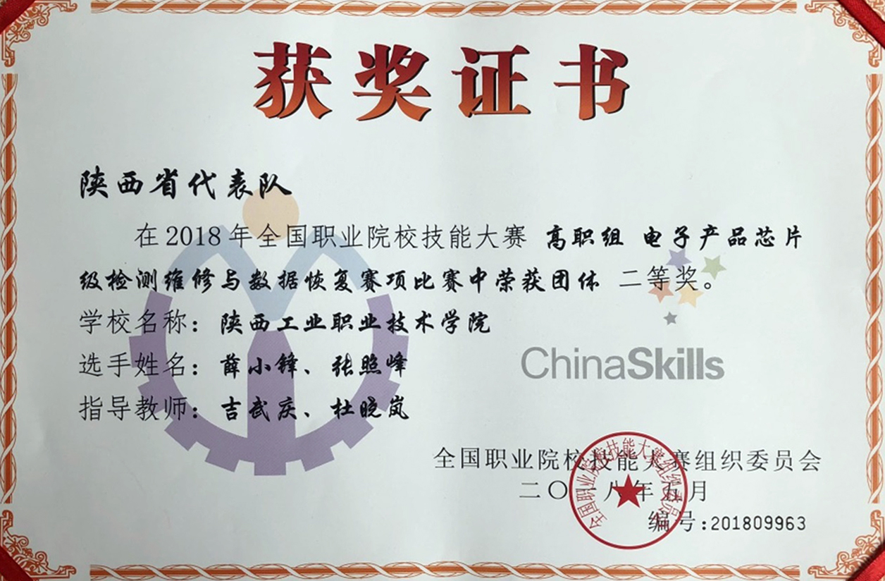 [国赛二等奖]乐游棋牌获得全国职业院校技能大赛电子产品芯片级检测维修与数据恢复赛项二等奖