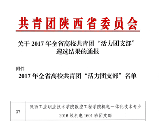 数控学院机电1601团支部荣获省级“活力团支部”