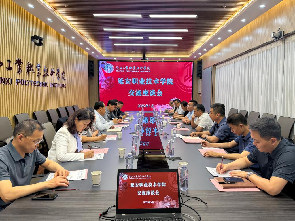 双方在经开校区图文信息中心七楼会议室进行座谈交流,座谈会由康强主持。会上,刘永亮校长对延安职业技术学院一行的来访表示热烈欢迎,并围绕我校发展历程、办学定位、校企合作、专业建设、师资队伍、教学改革等方面做了详细介绍。他指出,学校的发展离不开各级干部和广大教职工的辛勤付出,激发教职工动能、提高职工精气神是学校发展的核心动力。他强调,学校要明确自己在教育链、人才链、产业链、创新链中的定位,切实提升人才培养质量与产业需求的契合度,交接好接力棒。在产教融合实践中,学校聚焦实际生产需求,优化实训基地运营管理,积极与知名企业、研究院所建立深度合作关系,提高专业教师实操水平,把教师变成匠人,补齐教学短板。在校企合作领域,学校坚持一院一企、一企一品战略,加强与链主企业合作,携手具有品牌影响力的优质企业,构建深度融合的、具有“陕工”特色的校企合作新模式。