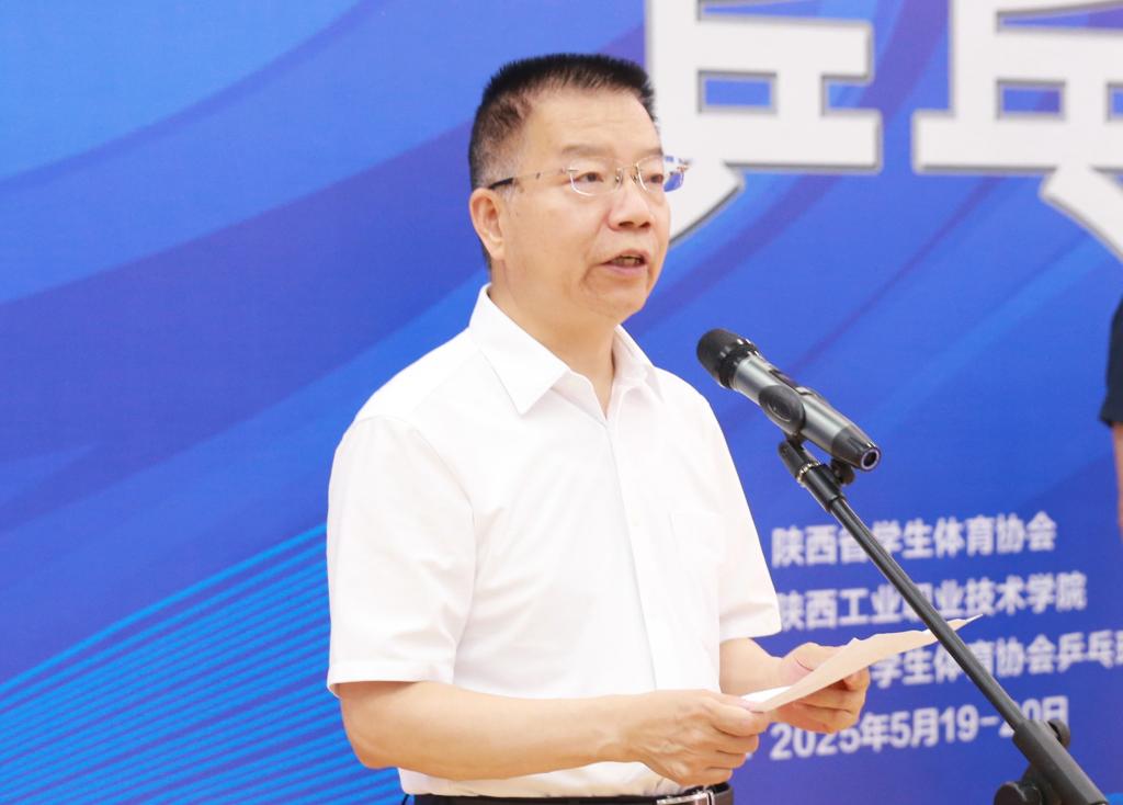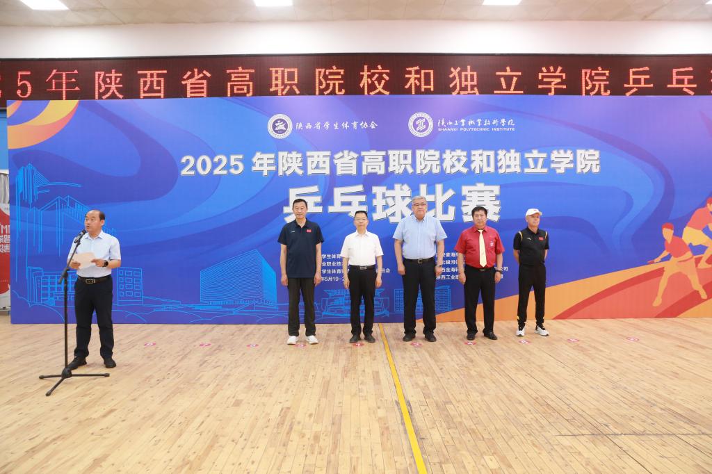 青春律动,激情飞扬,2025年陕西省高职院校与独立学院乒乓球比赛于5月19日在我校渭城校区乒乓球馆开幕。党委书记惠朝阳,陕西省学生体育协会秘书长张原耕、竞赛部部长石赛佳、乒乓球专业委员会主任刘乘翔及全体运动员裁判员参加了开幕式,开幕式由副校长梅创社主持。