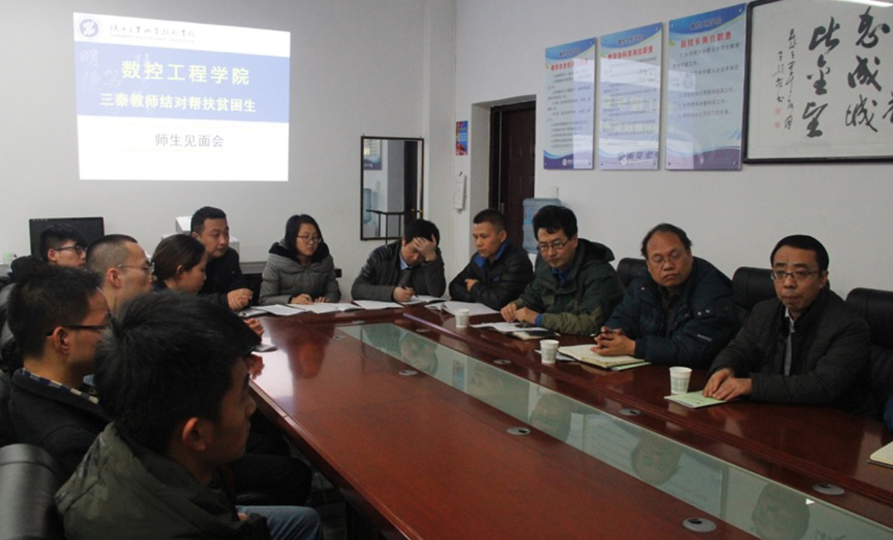 —数控工程学院 继12日就结对扶贫工作进行安排后,29日下午,数控工程学院召开“三秦教师结对帮扶贫困学生”见面会,纪委书记康强出席,数控学院科级以上干部,结对师生代表参加了会议。
