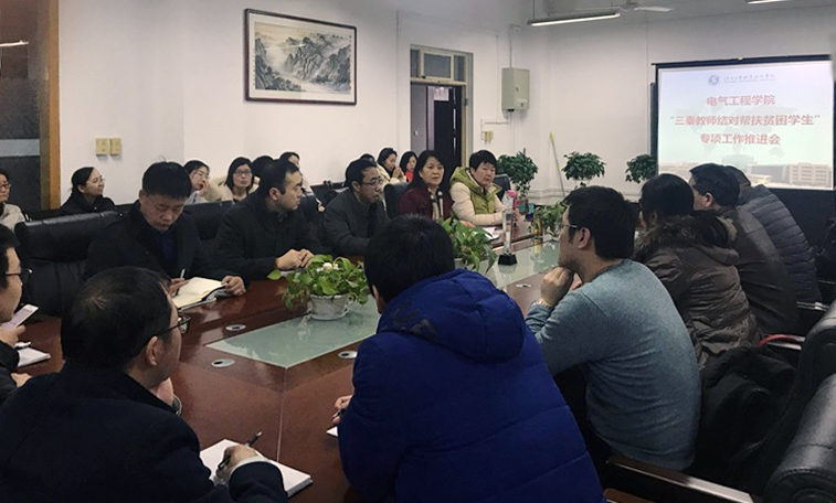 —电气工程学院 26日,电气工程学院召开“三秦教师结对帮扶贫困学生”专项工作推进会,纪委书记康强出席会议并讲话,电气学院全体教师参加会议。