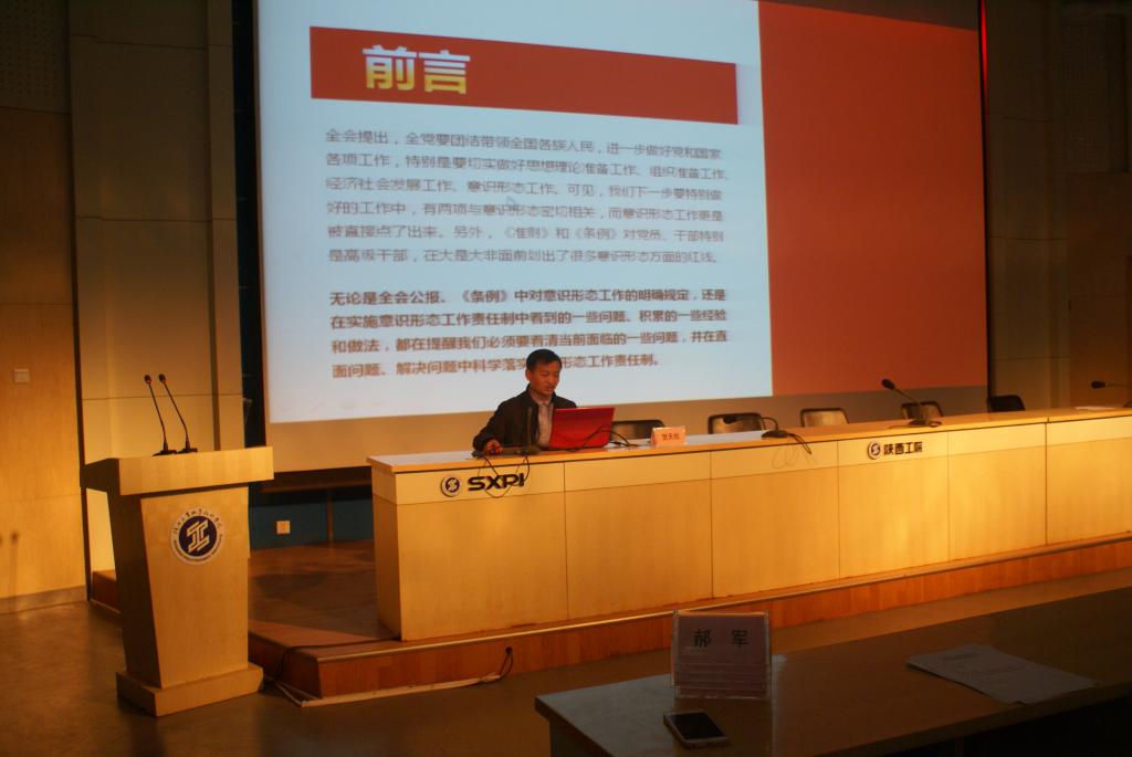 结业典礼结束后,党校副校长贺天柱给各位即将入党的同学上党课。贺老师以《坚守意识形态主阵地》为题,通过大量生动的案例给学生讲述互联网时代西方敌对势力对青年学生意识形态的渗透手段;帮助青年学生学习在意识形态斗争中的正确做法;告诫青年学生,要时刻坚持自己的理论信仰,坚持正确的世界观人生观价值观。