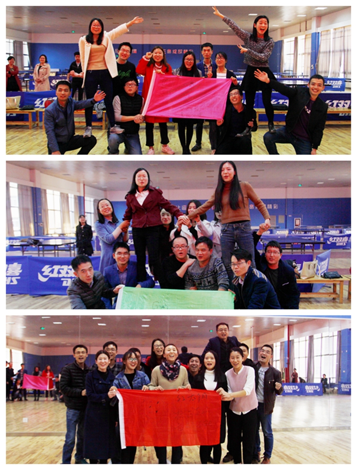 随后,青年教师们按照男女搭配和新老合作的惯例自由组队,在专业教练指导下,组建了战狼、红太阳、EITEAM三个战队,开始欢快的团队凝练环节。破冰、团队默契度训练、老师说、团队标识形成、风采展示、极速60秒等寓教于乐的小游戏将整场活动一次次推向高潮。活动中,大家配合默契,团结协作,促进了新教师之间的深度沟通和交流,极大的增强了新教师的团队意识和团队精神。