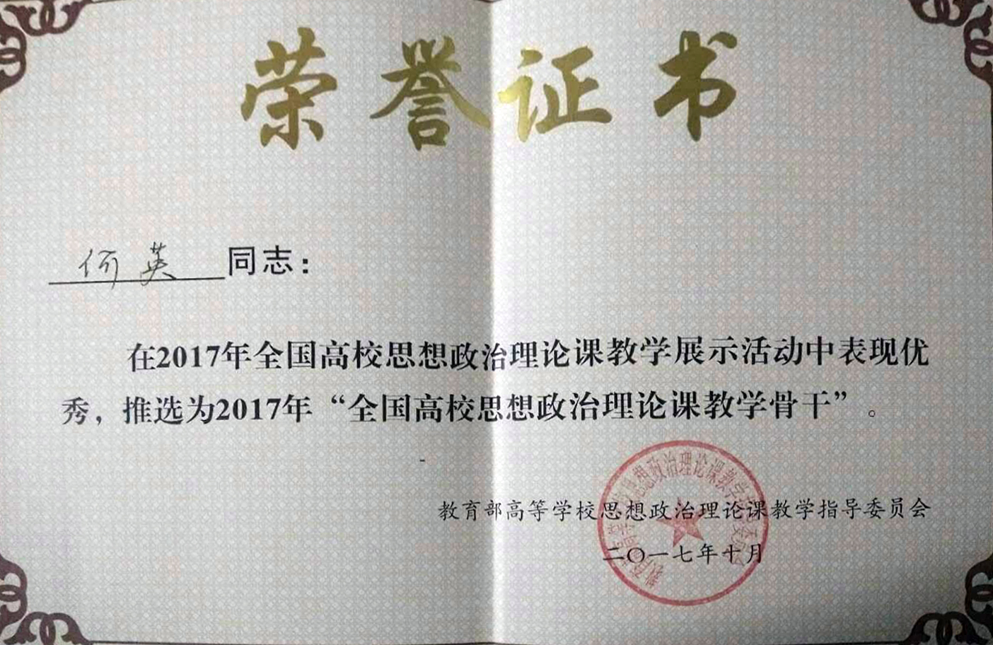 乐游棋牌何英同志获2017年“全国高校思政课教学骨干”称号