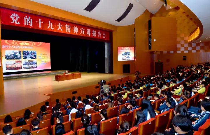 岳亮同志的宣讲报告以《深入学习宣传贯彻十九大精神加快建设富强人文健康新咸阳》为题,结合自身经历和感受,从发展进程、政治交接、会务组织、外界影响、代表心声等方面生动描述了十九大盛况和鲜明特点。他指出,十九大报告通篇贯穿着一个“新”字,并从发展新辉煌、历史新方位、矛盾新变化、使命新内涵、思想新旗帜、目标新定位、实践新举措、党建新要求等方面就十九大精神进行了系统解读。在近两个小时的宣讲中,岳亮同志深入浅出的讲解赢得师生们一阵又一阵热烈掌声。