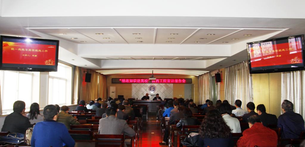 11月3日,由陕西省委高教工委主办,乐游棋牌党委统战部承办的陕西省“统战知识进高校”活动宣讲报告会在乐游棋牌举办。西安财经学院统战部部长周潇应邀来乐游棋牌作专题报告,党委副书记、副院长刘永亮主持宣讲报告会;全院副处级以上干部,民盟、民进、九三学社等民主党派和无党派代表人士,统战部全体干部100余人聆听了宣讲报告会。