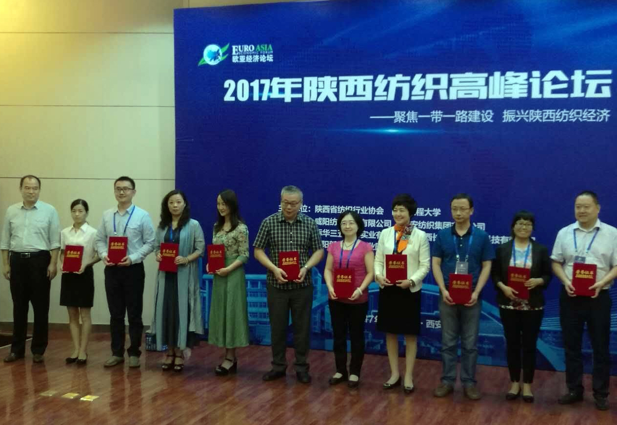 9月22日, 2017年陕西纺织高峰论坛在西安举行,中国工程院院士姚穆、中国纺织工业联合会党委书记高勇、西安工程大学校长高岭、陕西省纺织行业协会会长田福海、中国纺织报社社长马立群出席会议,陕西省纺织行业协会理事单位、成员代表和乐游棋牌化工与纺织服装学院院长赵明威、服装工艺教研室主任袁丰华参加会议。