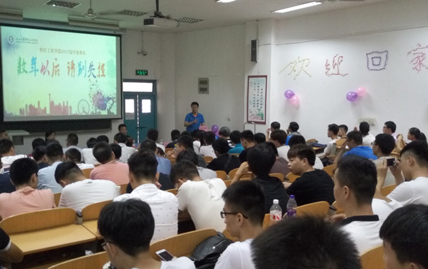 与会师生首先观看了反映2017届毕业生在校生活的《那些年,走过的岁月》专题片。班主任代表刘保朝、毕业生代表周浩东和在校生代表卢杨分别发言。郝军同志向全体毕业生送上祝贺,从烙印、情谊、规划、学习、责任五个关键词谈起,对毕业生表达了殷切的希望和祝福,希望大家在今后的人生道路上志存高远,怀抱理想,加强学习,勇于实践,脚踏实地,不断创新。数控学院还为2017届毕业生设置了毕业生签名留言墙,大家纷纷用笔留下了自己的名字及对母校深深的祝福。