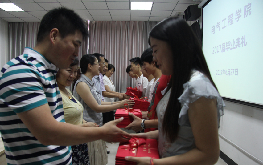 夏东盛同志对电气工程学院2017届毕业生完成学业、顺利毕业表示祝贺,希望同学们明德修身,心存敬畏,常怀感恩,回报社会、回馈他人、感恩父母,也欢迎大家在工作之余常回母校看看。班主任代表王晓莉为毕业生们送上了良好祝愿。自动化1404班王颖同学代表全体毕业生对三年来辛勤培养的全体老师表示衷心感谢,决心努力工作,为母校争光,并鼓励在校同学好好学习。会后,电气学院还召开了毕业生座谈会,听取同学们的意见和建议。
