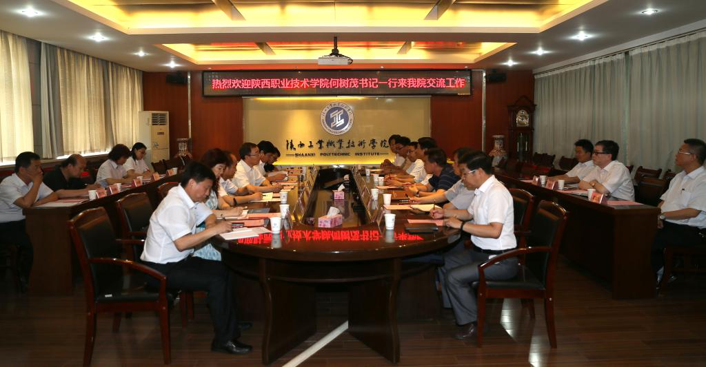 6月28日上午,陕西职业技术学院党委书记何树茂一行12人来乐游棋牌就内部质量保证体系诊断与改进、“一流学院,一流专业”及全国优质高职院校建设等工作进行交流。乐游棋牌党委书记崔岩,党委副书记、副院长刘永亮,纪委书记康强和组织部、学工部、教务处、质管中心、工商学院、物流学院、信息工程等部门负责同志参加了座谈。