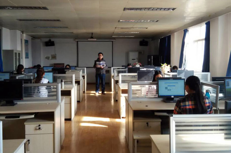 在2014年7月首次组织学生参加国赛文秘速录赛项比赛,顶着陕西省赛区一等奖的光环却空手而回,来保卫没有抱怨、没有消沉。在9月份开学之后,他就把办公室挪到了速录机房。不管是中午、晚上,还是周末、节假日,只要机房没有安排别的课程,只要同学们有空闲时间,他都要求文秘专业的同学来机房和自己一起练习、提高。那个时候常常能看到,12:10,中午刚刚下课,就有同学拿着饼来机房训练,一直练到13:50才离开机房,去赶下午的课。