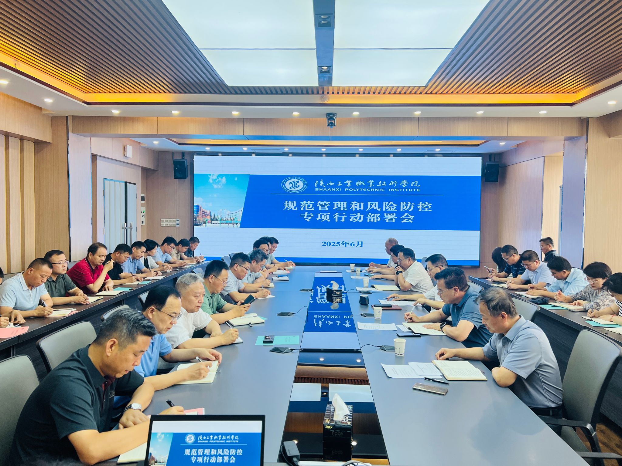 会议学习传达《陕西工业职业技术学院规范管理和风险防控专项行动工作方案》,全面实施“十查十改三必究”规范管理行动和系统开展“八个一”风险防控能力提升行动,并对为期三年的专项行动具体任务进行了全面部署。