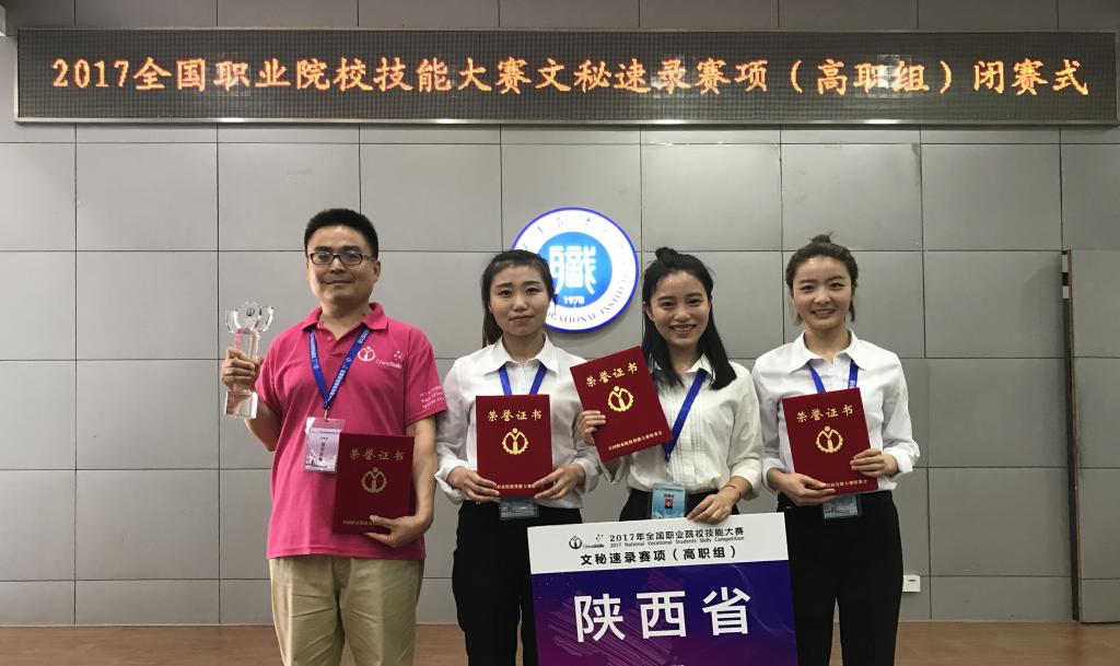 5月10日,2017年全国职业院校技能大赛“亚伟杯”文秘速录专业技能赛项比赛在天津落下帷幕,全国28个省市、69所院校的207名选手参加了实时速录与文书整理、文字校对与文本速录、模拟办公管理、蒙目速录、办公室实务操作等5项内容的竞赛,工商管理学院文秘专业张洋、姚婷婷、李海艳3名同学组成的代表队最终斩获团体一等奖,这也是连续第二年取得该赛项一等奖。来保卫、李晓红同志还获得教育部优秀指导教师称号。