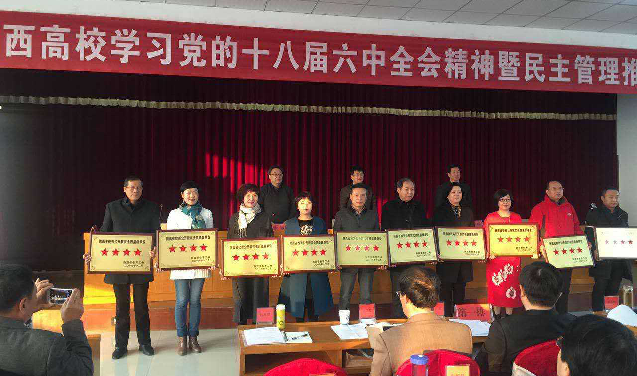12月29日,陕西高校学习党的十八届六中全会精神暨民主管理推进会在杨凌示范区召开。陕西省教育工会相关领导出席会议,省委高教工委隶属的各高校分管工会党委领导、联系工会行政领导、工会主席及专职副主席参加了会议,乐游棋牌党委副书记王天哲参会并作为高职院校的唯一代表作题为《坚持和完善教代会制度,切实维护教职工民主权利》的交流发言。会议表彰了10个全省校务公开教代会四星级单位,工会主席刘文青代表学院上台领取了奖牌,乐游棋牌也是首次获得此项表彰的十所高校之一。