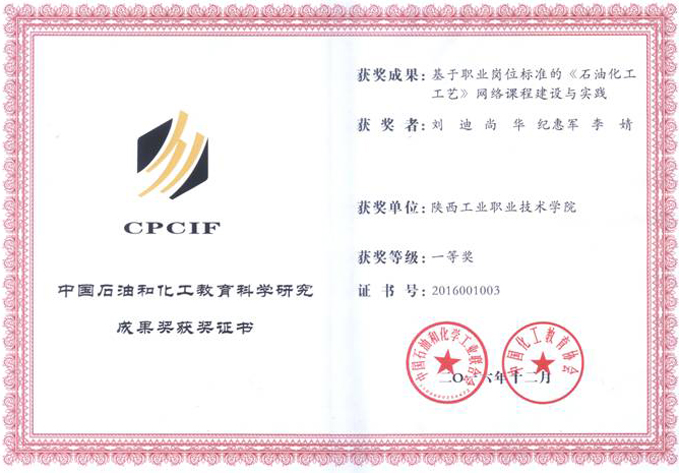 乐游棋牌获二项第四届中国石油和化工教育科学研究成果奖