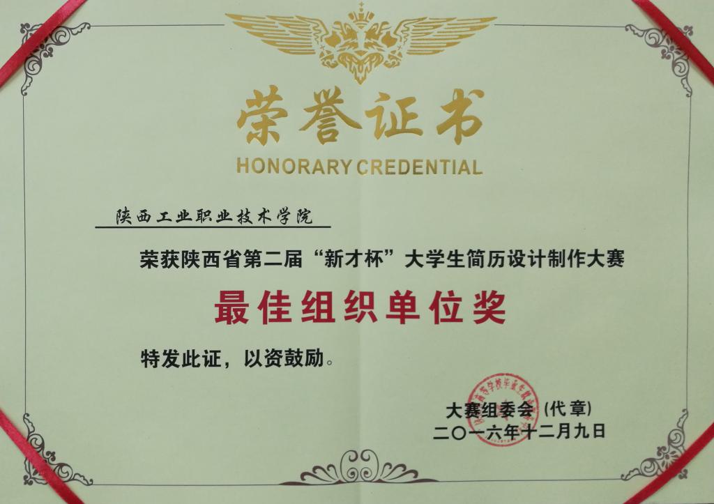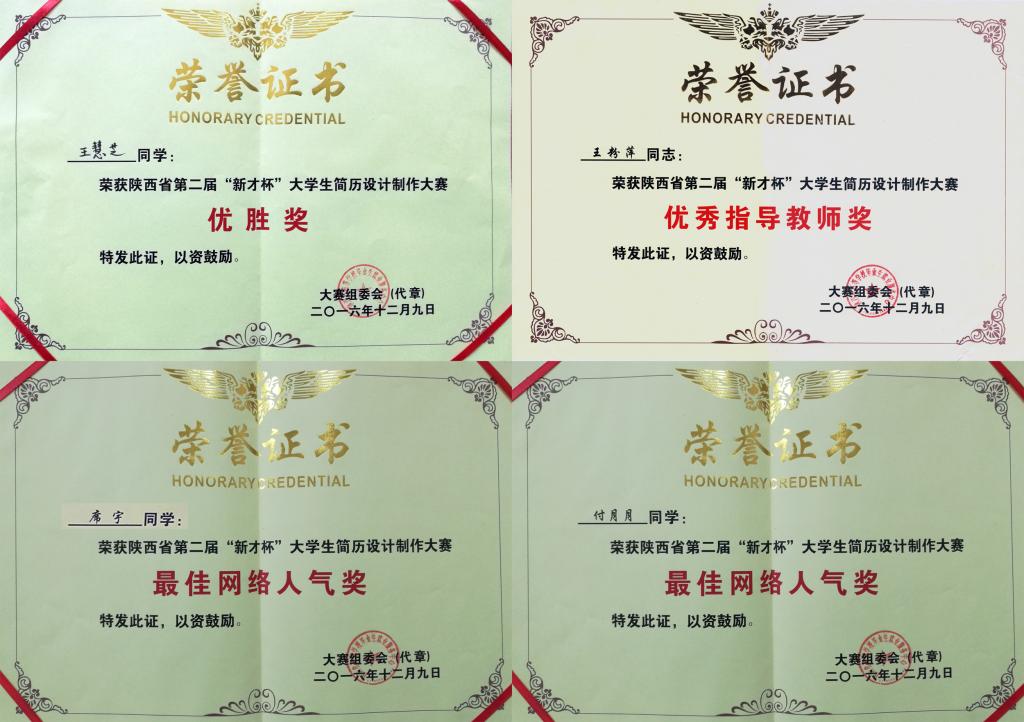 乐游棋牌获陕西省第二届大学生简历设计制作大赛最佳组织单位奖