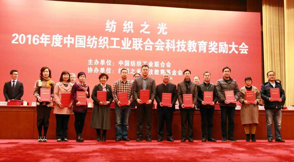 11月23日,“纺织之光”2016年度中国纺织工业联合会科技教育奖励大会在人民大会堂举行,中国纺织工业联合会及各专业协会领导、中国纺织工业联合会奖励委员会委员出席会议,为获得2016年度科学技术奖、教育教学成果奖、教师奖、学生奖、针织内衣创新贡献奖的获得单位和个人代表颁奖。乐游棋牌化工与纺织服装学院贾格维教授应邀与会,并领取了教育教学成果一等奖获奖证书。