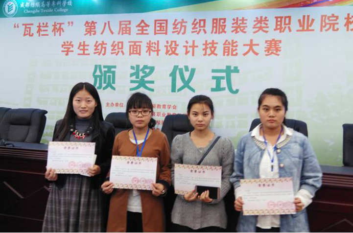 10月28至10月30日,“瓦栏杯”第八届全国纺织服装类职业院校学生纺织面料设计技能大赛在成都举行,乐游棋牌化工与纺织服装学院教师曹红梅、严瑛指导的刘宇、何丹丹同学荣获“针织面料”三等奖;化工与纺织服装学院教师杨小侠指导的张仙仙、李秋影同学荣获“纺织面料”三等奖,黄庚、王欢苗同学获“纺织面料”优秀奖。