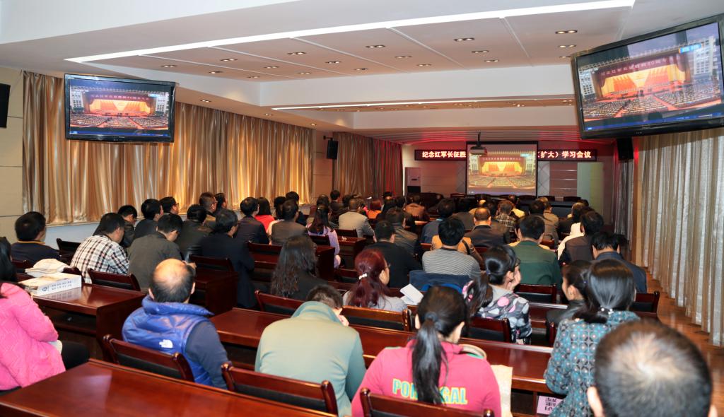 10月21日上午,党委中心组召开专题学习(扩大)会,组织党委中心组成员、全院副科级以上干部集体收看纪念长征胜利80周年大会实况。与会党员同志表示,习近平总书记的讲话回顾了红军在党的领导下艰苦卓绝的光辉历程,强调了长征胜利的伟大意义和宝贵经验,激励着我们爱党爱国、坚定跟党走的决心。大家决心要以传承和弘扬长征精神为己任,将其内化为不惧险阻、勤勉敬业、务实创新的强大精神动力,外化为开创学院改革发展新局面的岗位实践。