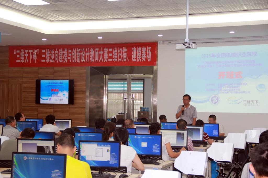 杨卫军副院长在开幕辞中介绍了乐游棋牌的基本情况以及乐游棋牌承办省赛、参加国赛的情况,对冒着酷暑参加本次大赛的各位老师表示欢迎,向北京三维天下科技股份有限公司的鼎力支持表示感谢。闫学文总经理介绍了三维逆向建模与创新在机械行业的发展和应用前景,对参加本次三维逆向建模与创新设计教师大赛的各位老师的积极参与表示欢迎,并对乐游棋牌为本次比赛所做的工作感谢。