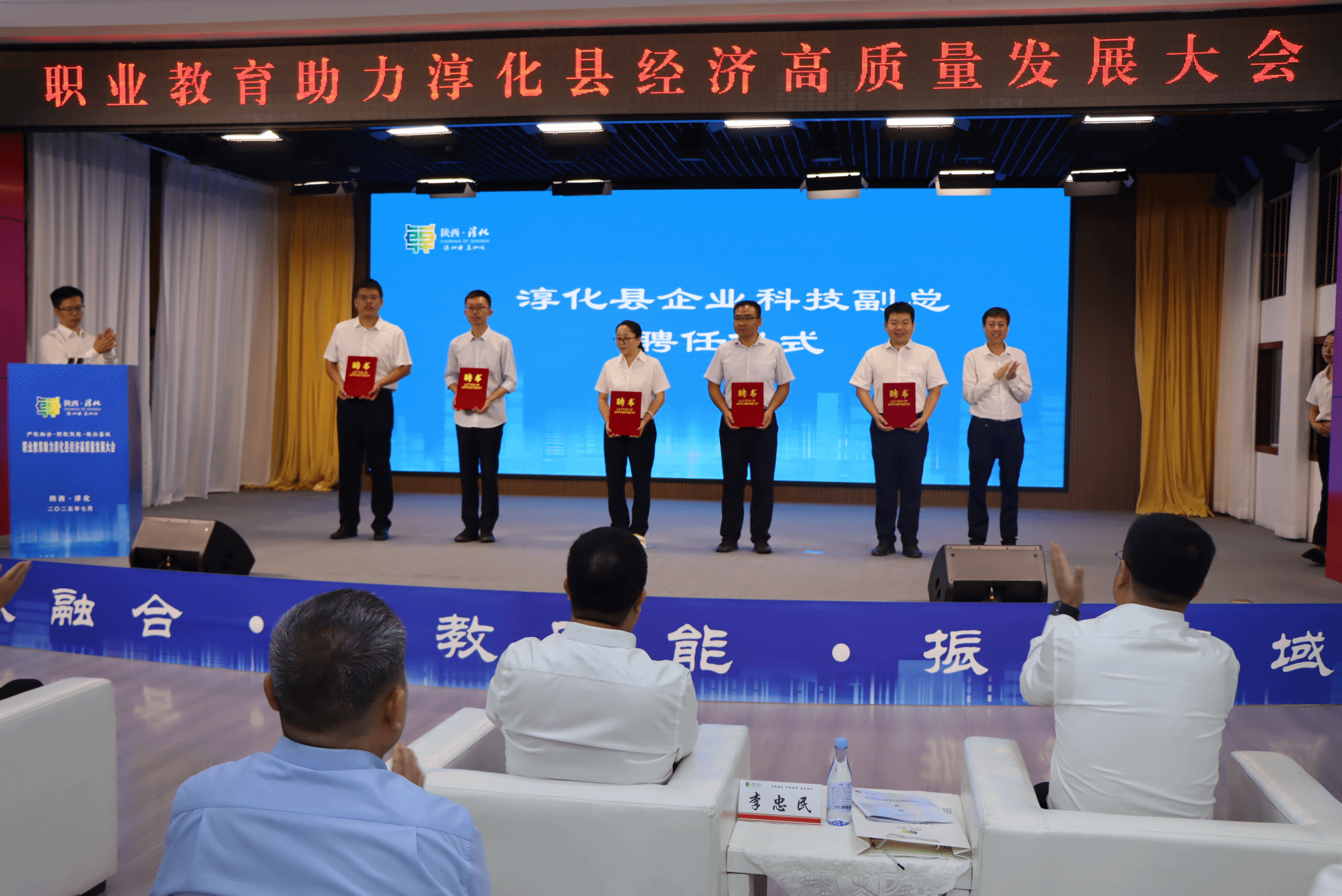 7月23日,由陕西省中华职业教育社主办,我校联合咸阳职业技术学院、淳化县人民政府共同承办的“职业教育助力淳化县经济高质量发展大会”在淳化县顺利召开。省政协副主席、省中华职业教育社主任李忠民,省社会科学界联合会党组成员、副主席李谫博,机械工业教育发展中心主任陈晓明,上海市教科院职教所所长张晨,咸阳市政协副主席、市中华职业教育社主任房晓飞,咸阳市科技局副局长陈振宁、咸阳市教育局四级调研员李敢创等领导出席,我校党委书记惠朝阳、咸阳职业技术学院校长杨卫军、陕西农林职业技术大学副校长胡俊鹏、陕西能源职业技术学院党委副书记任向明、西安技师学院副院长张大宁、陕西省电子信息学校党委书记顾学福、咸阳市秦都职教中心副校长君小斌等院校领导参加大会。