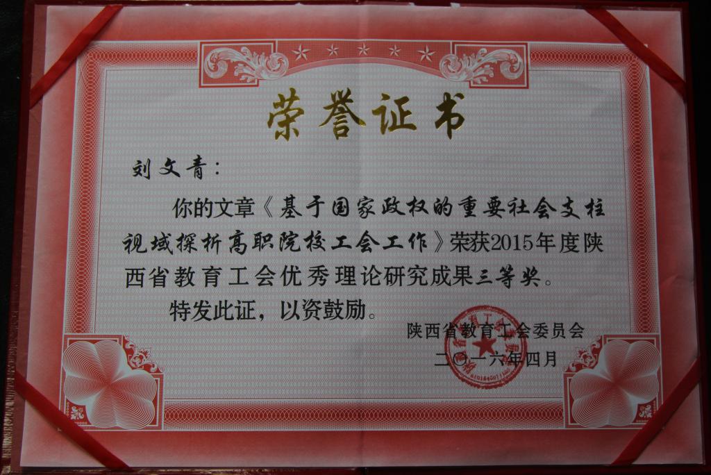 2015年初,乐游棋牌工会加大工运理论研究的支持力度。一方面,积极发挥陕西工院工运理论研究会的作用,大力号召学院工会委员、分会主席和委员、乃至普通工会会员积极投身工运理论研究工作;另一方面,组织工会委员构成的评审团从选题、调研和论文撰写、结构设计、格式等方面全面支持、全程指导。最终,在全院范围内选送6篇工运理论研究成果上报省教育工会参评,2篇获奖。工会主席刘文青撰写的工会调查报告连续五年荣获省教育工会优秀理论调研成果奖,此次撰写的《基于国家政权的重要社会支柱视域探析高职院校工会工作》一文不但被评为优秀理论研究成果三等奖,还被西北大学公开出版的期刊《高教发展研究》2016年第2期收录发表,为全省高职院校工会工作提供了经验和借鉴。工会王金省老师撰写的《“认家”活动意义琐议》获得优秀理论研究成果三等奖。
