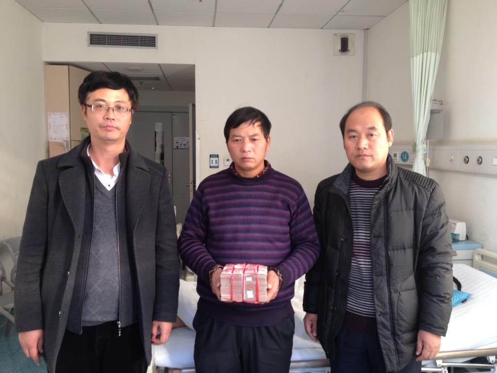 12月26日下午,学院副院长梅创社、学工部部长王超联、工商学院党总支书记孙继龙一行专程前往西安唐都医院,代表全院师生将17.7万余元的募捐款当面交给罹患重症的谷欣同学的父亲。手捧沉甸甸的爱心,他感激不已,对学校领导、师生和爱心人士的关心与帮助表示深深的感谢。