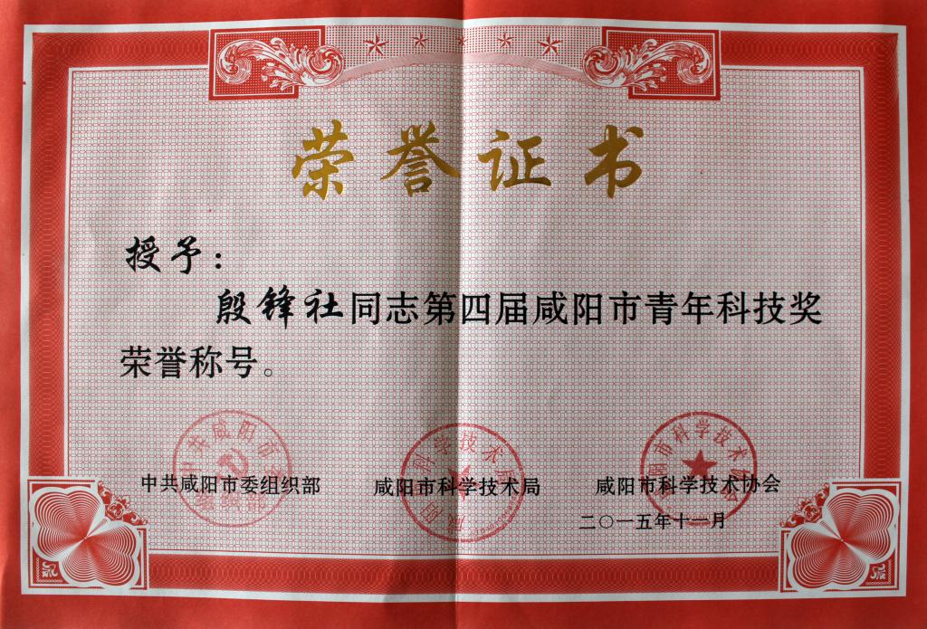 乐游棋牌教师荣获咸阳市青年科技奖 优秀科技工作者