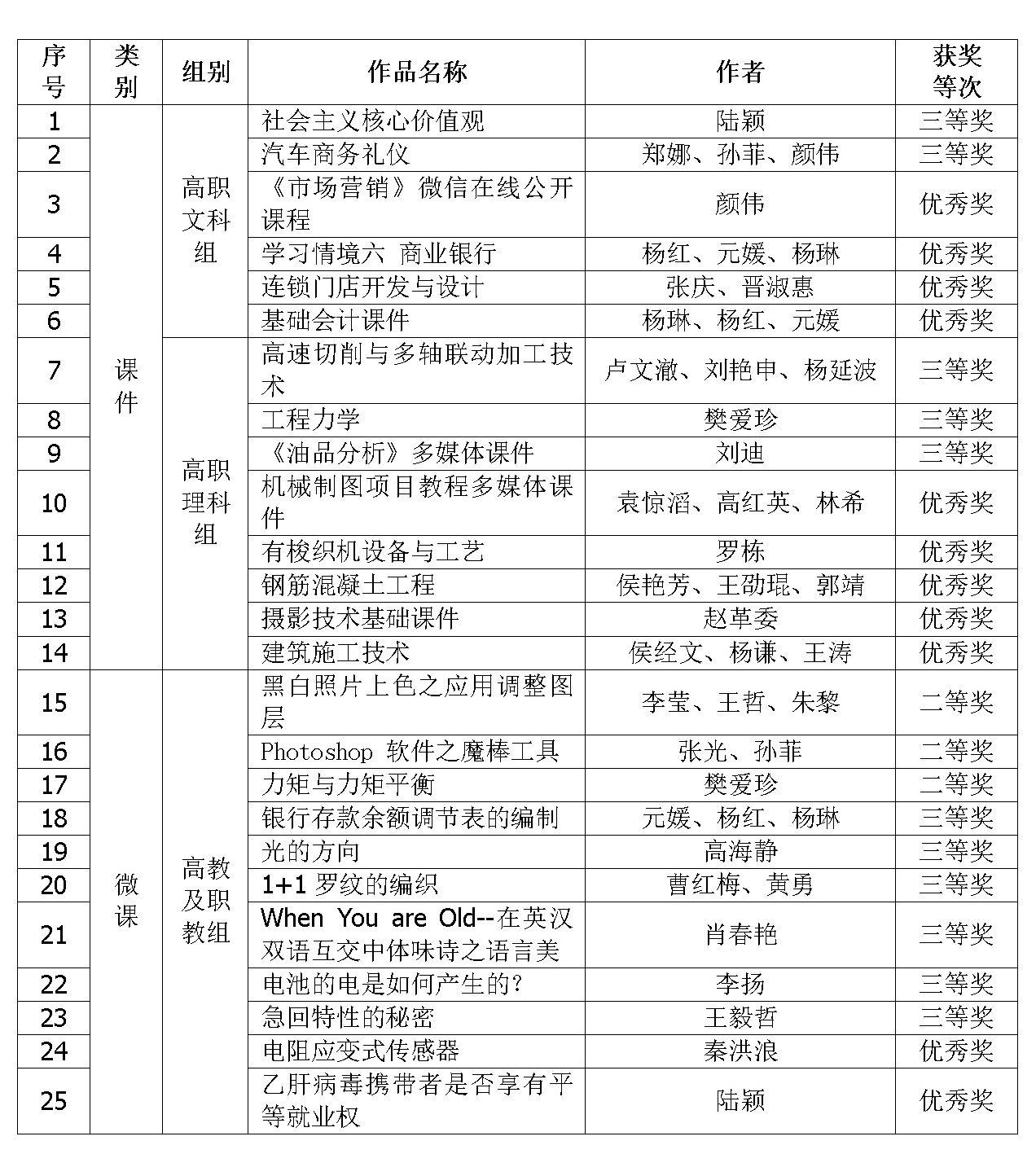 据了解,本次比赛共设置高教文科组、高教理科组、高教工科组、高教医科组、高职文科组、高职理科组、中职组、高中组、初中组、小学组、幼教组、微课组等13个组别,共征集到参赛作品6727件,评选出一等奖作品363件,二等奖作品1081件,三等奖作品2140件,单项奖作品24件。
