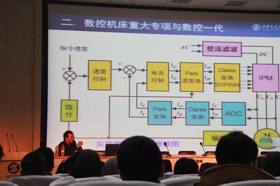 张东升博士报告从数控系统原理、数控机床重大专项、数控一代、德国工业4.0、中国智能制造及智能控制的迫切需要等几个方面做了详细的论述与分析,从负反馈原理出发,演绎出装备数控化和智能化的理论体系,使师生们能够站在理论的制高点,纵览装备制造业的技术脉络,张博士的报告深入浅出,信息量大,对师生们把握数控技术的前沿理论和方向,具有指导意义。报告会前,张博士还参观了乐游棋牌机加工中心等实训场所,并与数控学院领导进行了座谈。