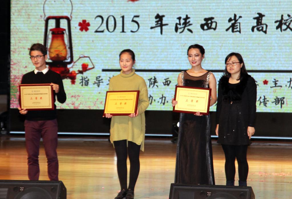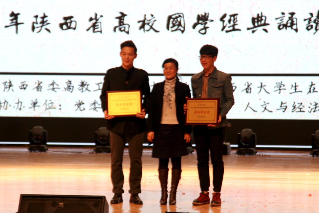 诵读国学经典,传承传统文化。11月27日,由陕西省委高教工委指导,陕西大学生在线主办的2015年陕西省高校国学经典诵读大赛决赛在西北工业大学举行。通过前期两场初赛晋级的八所高校的八个节目进入决赛,最终,乐游棋牌作品《薪火传承》荣获最佳创意奖,同时荣获三等奖,乐游棋牌被授予优秀组织奖。