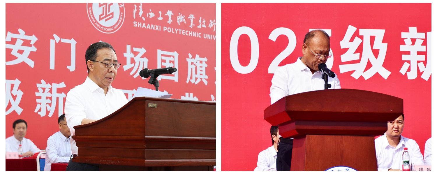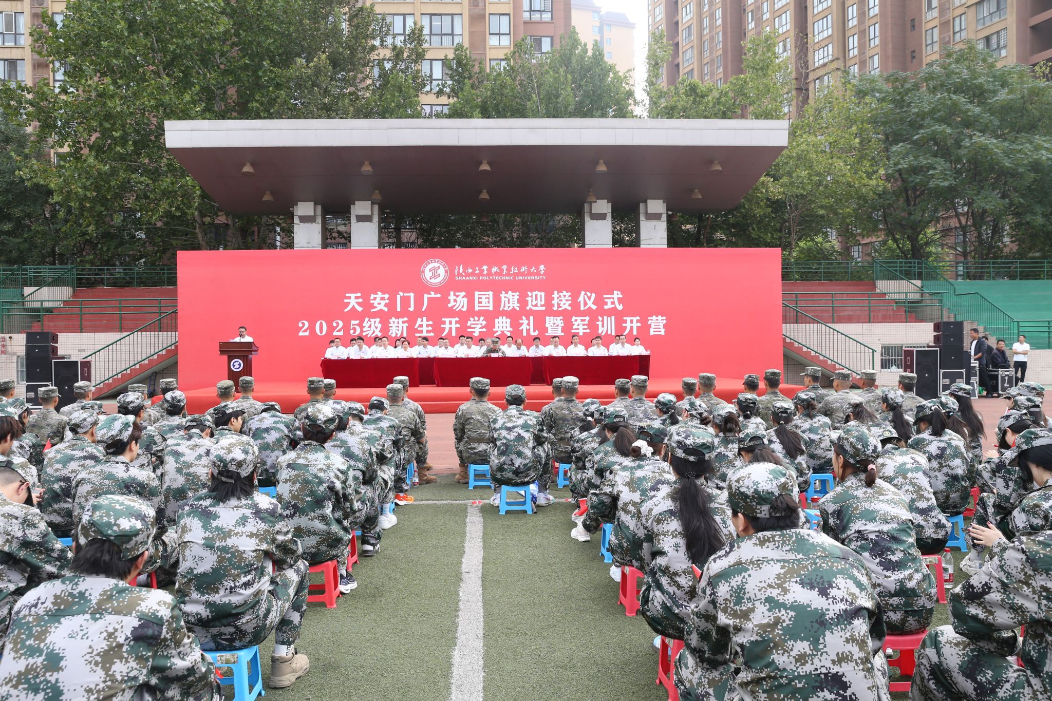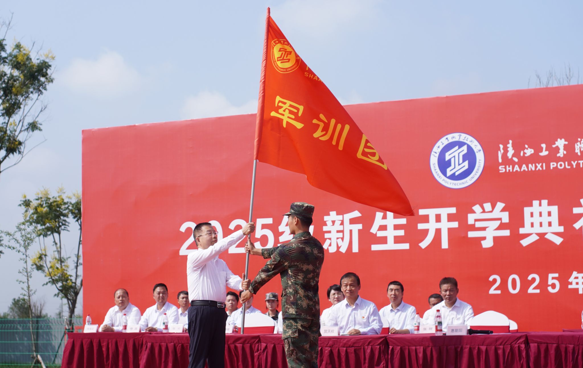 深情寄语,勉励新生。鲜艳的五星红旗下,两校区新生整装待发,精神抖擞,时刻准备着用拼搏和汗水开启大学新篇。在经开校区,党委书记惠朝阳寄语2025级新生,以实践为导向、以创新为驱动、以人格塑造为目标,在实训车间里真操实练、在项目团队中协同攻坚、在技能赛场上巅峰对决,尽快完成从“学会”到“会学”、从“接受”到“创造”、从“跟随”到“引领”的根本性蜕变。他分享三点建议和希望,一是“胸怀家国”,做志向高远的“逐梦人”;二是“精技强能”,做追求卓越的“工匠人”;三是“锤炼身心”,做锐意进取的“担当者”。希望大家走出宿舍、走向操场,在汗水中强健体魄,在舞台上展现风采,在挑战中磨砺心志。党委副书记、校长刘永亮在渭城校区会场致辞。他寄语同学们身在陕工、学在陕工、成长在陕工、快乐在陕工;珍惜韶华,不负时代,努力成长为可堪大用、能担重任的栋梁之才。并提出四点希望,一要眼里有光,道德之光;二要心中有爱,仁义之爱;三要手里有活,工匠之活;四要立身有本,健康之本。希望同学们在军训中,从思想上、行动上服从纪律、刻苦训练,顺利完成军训任务,以合格成绩开启大学生活第一章。