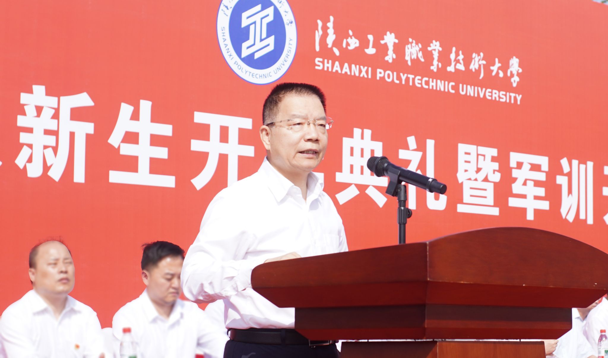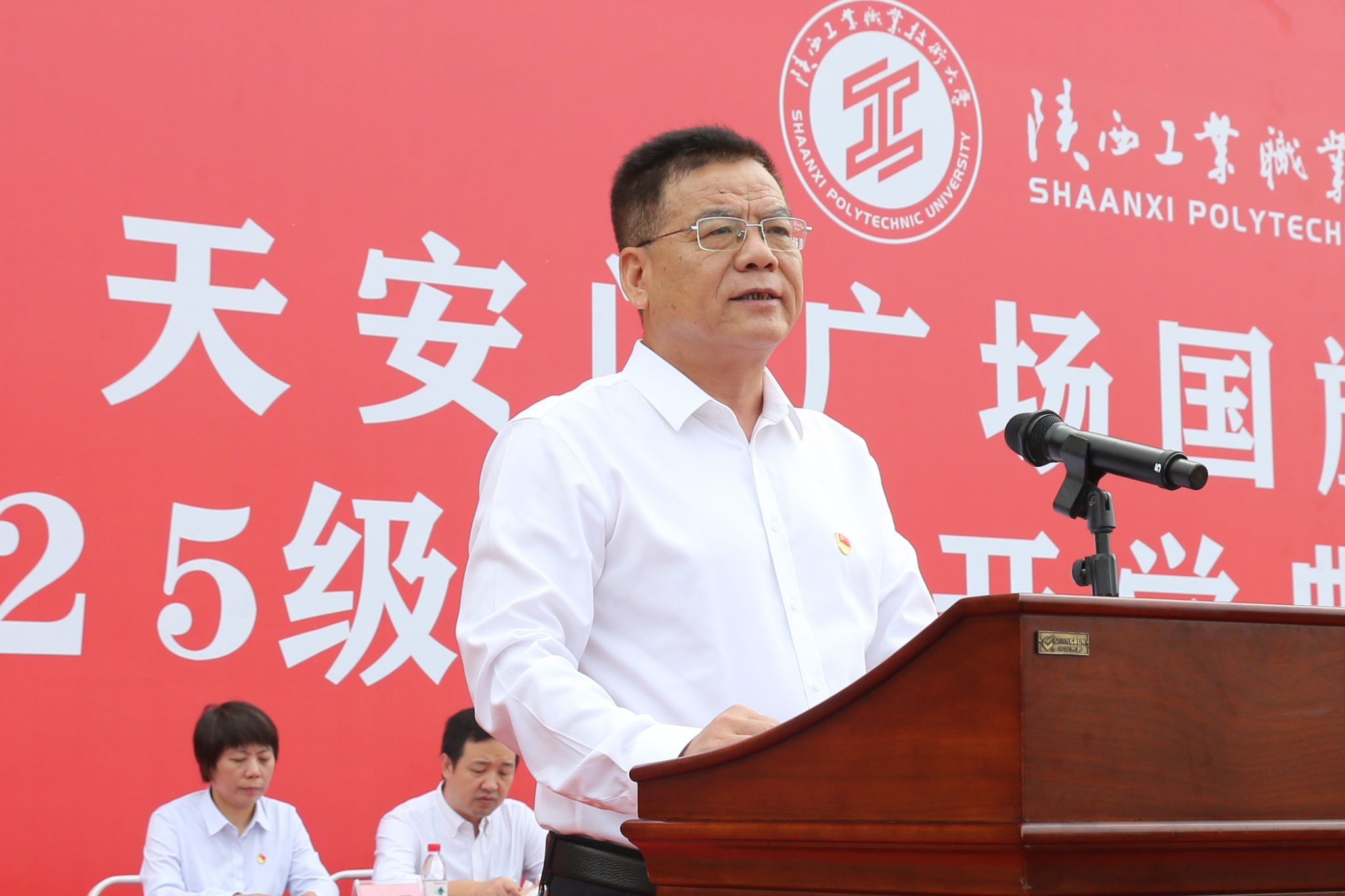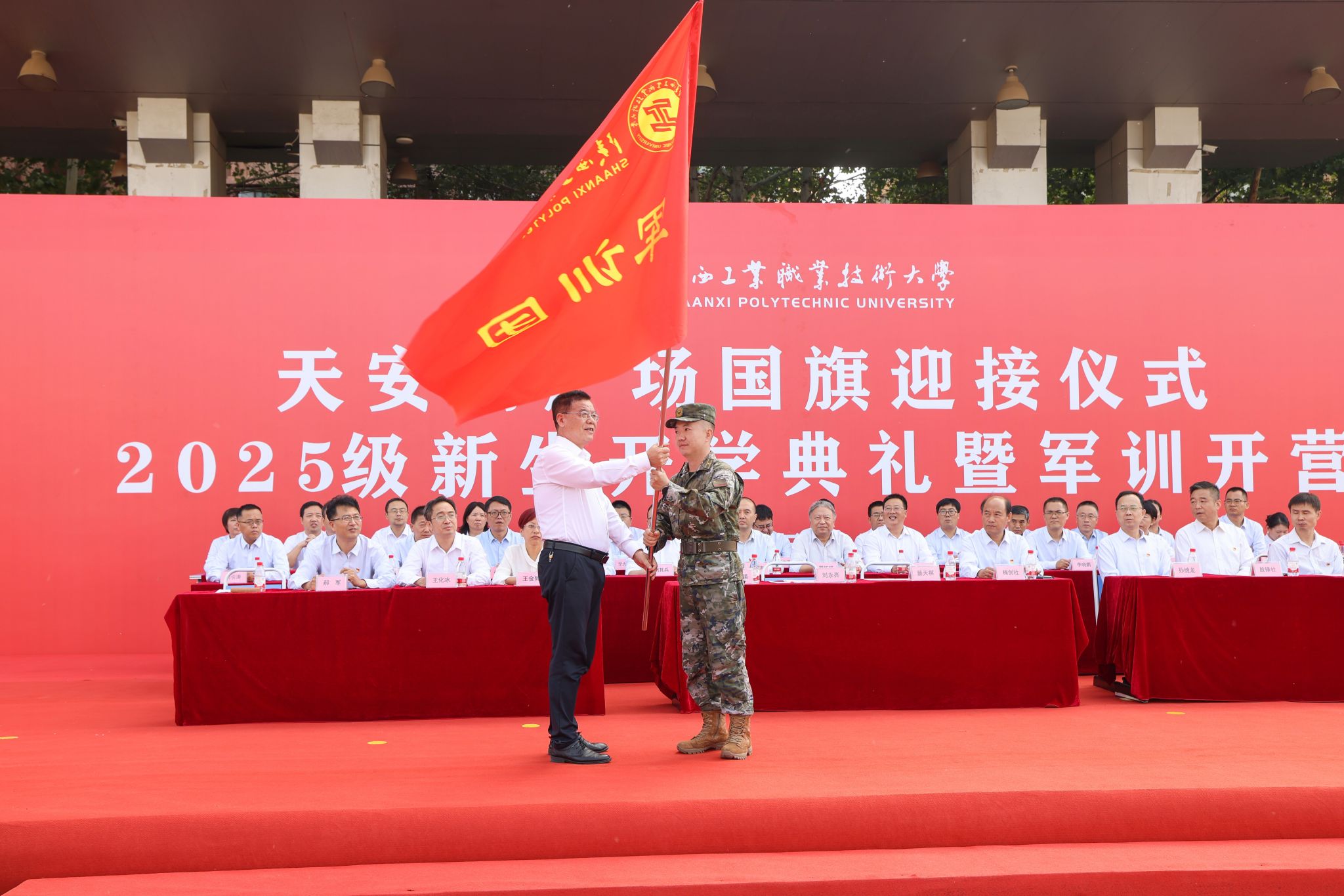 深情寄语,勉励新生。鲜艳的五星红旗下,两校区新生整装待发,精神抖擞,时刻准备着用拼搏和汗水开启大学新篇。在经开校区,党委书记惠朝阳寄语2025级新生,以实践为导向、以创新为驱动、以人格塑造为目标,在实训车间里真操实练、在项目团队中协同攻坚、在技能赛场上巅峰对决,尽快完成从“学会”到“会学”、从“接受”到“创造”、从“跟随”到“引领”的根本性蜕变。他分享三点建议和希望,一是“胸怀家国”,做志向高远的“逐梦人”;二是“精技强能”,做追求卓越的“工匠人”;三是“锤炼身心”,做锐意进取的“担当者”。希望大家走出宿舍、走向操场,在汗水中强健体魄,在舞台上展现风采,在挑战中磨砺心志。党委副书记、校长刘永亮在渭城校区会场致辞。他寄语同学们身在陕工、学在陕工、成长在陕工、快乐在陕工;珍惜韶华,不负时代,努力成长为可堪大用、能担重任的栋梁之才。并提出四点希望,一要眼里有光,道德之光;二要心中有爱,仁义之爱;三要手里有活,工匠之活;四要立身有本,健康之本。希望同学们在军训中,从思想上、行动上服从纪律、刻苦训练,顺利完成军训任务,以合格成绩开启大学生活第一章。