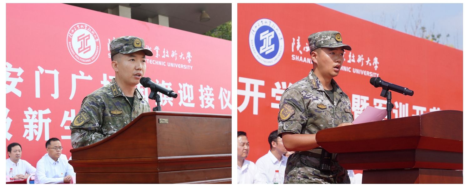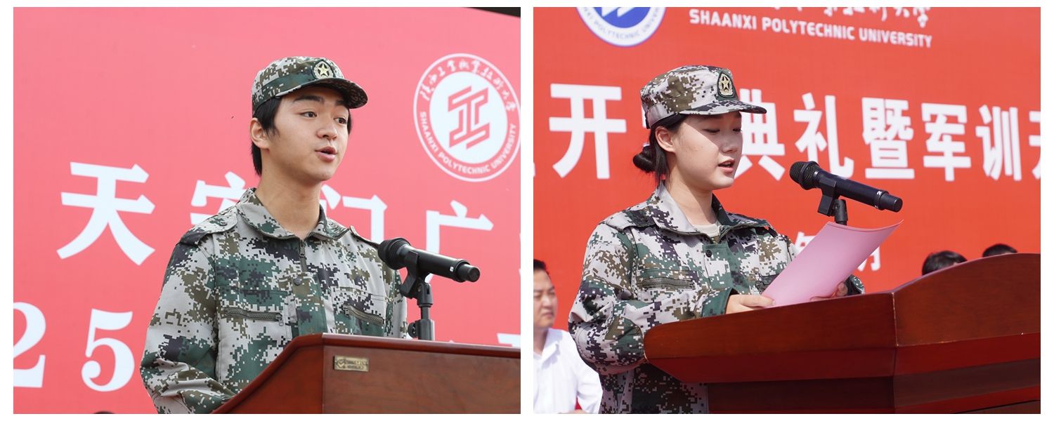 携手新程,戎装启程。机电2503班丁天昱、人工智能2501班吕安琪作为新生代表发言。带着初入陕西工大的欣喜和激动,他们表示将以新起点担当新使命,以新征程呼唤新作为,从此刻开始以迷彩为序章,以匠心为底色,在陕西工大的沃土上,书写属于新一代陕工学子的崭新篇章。承训部队军训教官代表蔡天祺、余帅,希望新同学把军训作为一次人生历练,学习部队的优良传统,养成艰苦朴素、吃苦耐劳的思想作风和雷厉风行、令行禁止、勇敢顽强意志品质,为成长成才打下坚实基础。