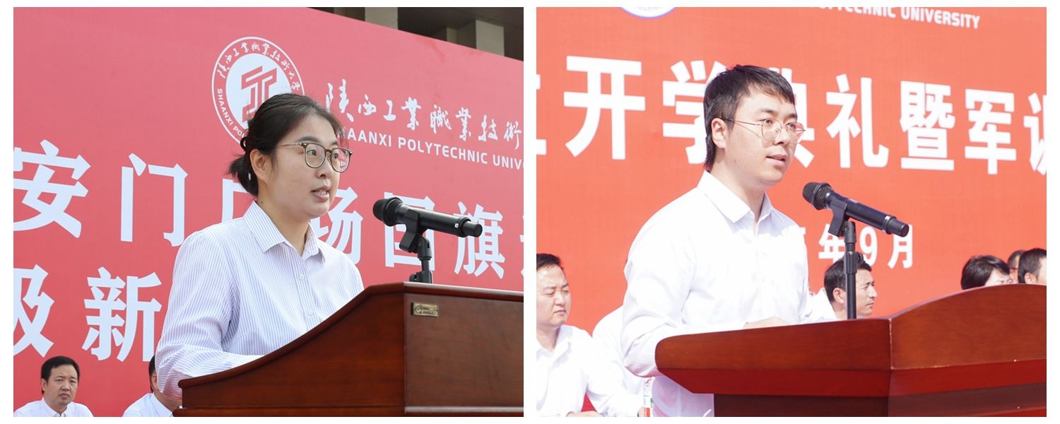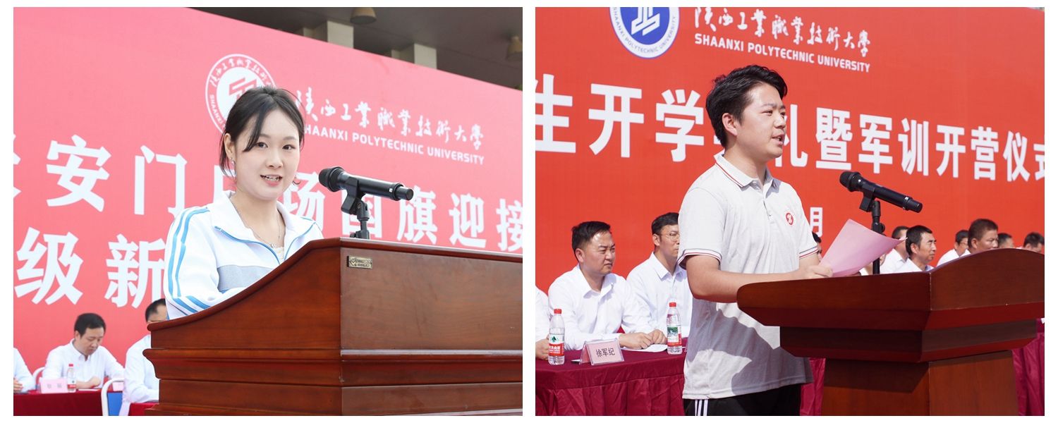 师者传道,榜样引领。陕西高校优秀青年人才支持计划入选教师李晨薇、世界技能大赛金奖指导教师程天一作为教师代表发言。鼓励同学们带上勇气拥抱试错,主动出击拥抱生活,笃行实干拥抱未来;希望同学们把技能扎根与理论铸魂结合,做精益求精的实干者,以跨界融合打破专业壁垒,做能打硬仗的多面手。供用电2301班谭柯乙、旅游管理2401班雷家乐作为学生代表发言。希望各位新同学以铁纪勉励自我,用汗水铸就成长,用行动做好军训;抓好大学学习黄金期,扎实练就技能报国真本领,共同书写好青春华章。