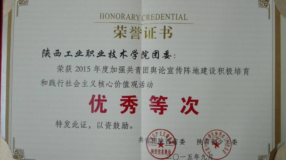 近日,根据共青团陕西省委、陕西省少工委下发的《关于2015年度发挥团属期刊作用开展培育和践行社会主义核心价值观教育活动的情况通报》,乐游棋牌团委被评为“2015年度加强共青团舆论宣传阵地建设积极培育和践行社会主义核心价值观”优秀等次.