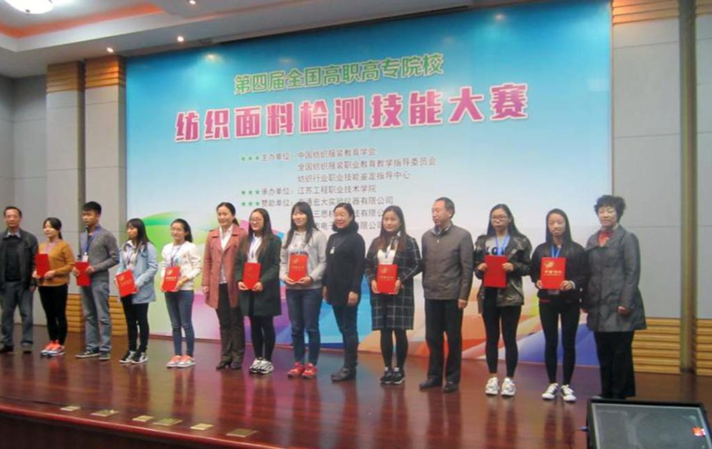 本次大赛由中国纺织服装教育学会和中国纺织服装技能鉴定中心联合举办,江苏工程职业技术学院承办,来自全国18所高职高专院校的87名选手参加了比赛。乐游棋牌由杨小侠、严瑛两位教师指导,纺织品检验与贸易1302班张阳、张艳娇;纺织品检验与贸易1301班李玺、惠冰雪、石美静五名同学参赛。