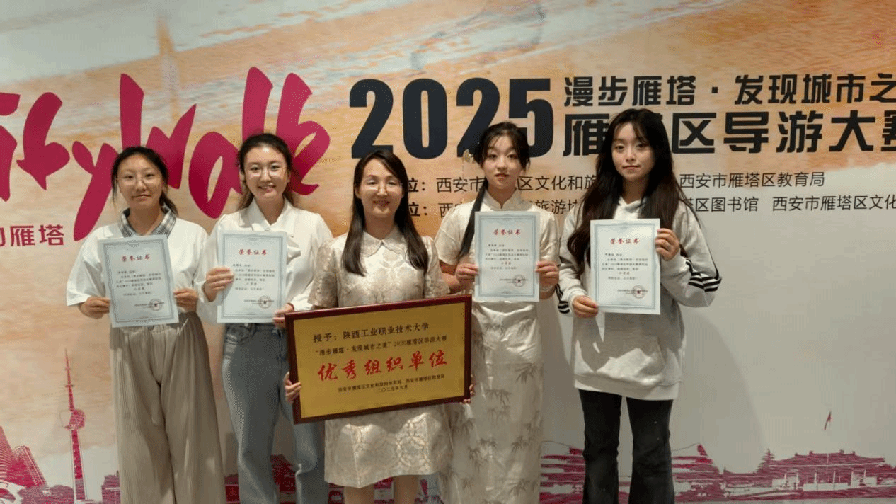 9 月 20 日,由西安市雁塔区文化和旅游体育局、雁塔区教育局联合主办,雁塔区旅游协会、雁塔区图书馆、雁塔区文化馆共同承办的“漫步雁塔?发现城市之美”导游大赛总决赛,在雁塔区图书馆五楼隆重拉开帷幕。我校商务英语专业4名学子凭借扎实的技术技能和综合素养,在高校组众多参赛队伍中脱颖而出,成功斩获二等奖2项,同时我校获评“优秀组织单位”。