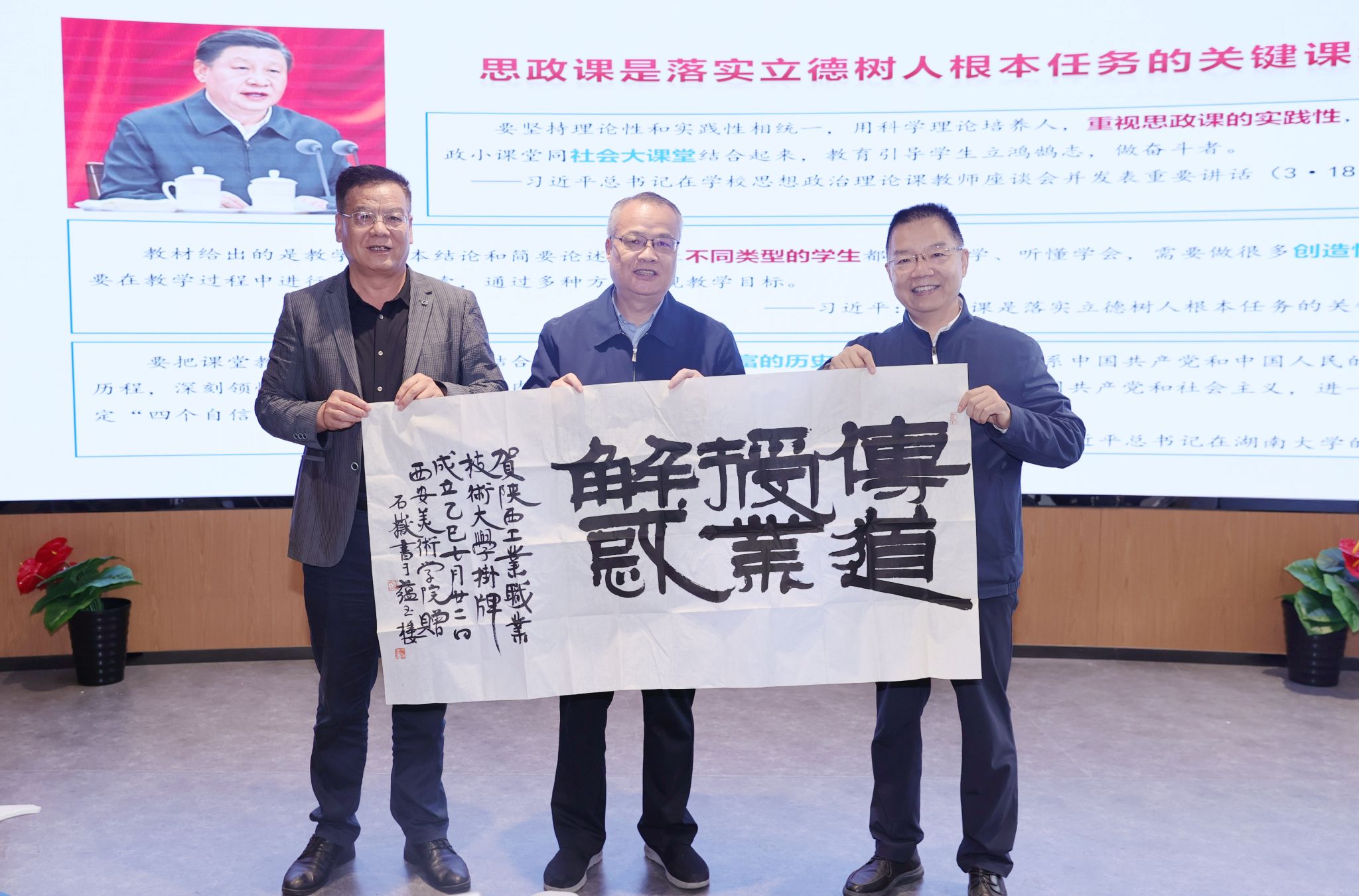 丁巨涛一行先后走访调研了学马研习·践创空间、材料智能成型实训基地、先进制造技术工程中心等,现场观摩了数字化教学工厂、智能产线等实践教学场景,并向学校赠送书法作品。