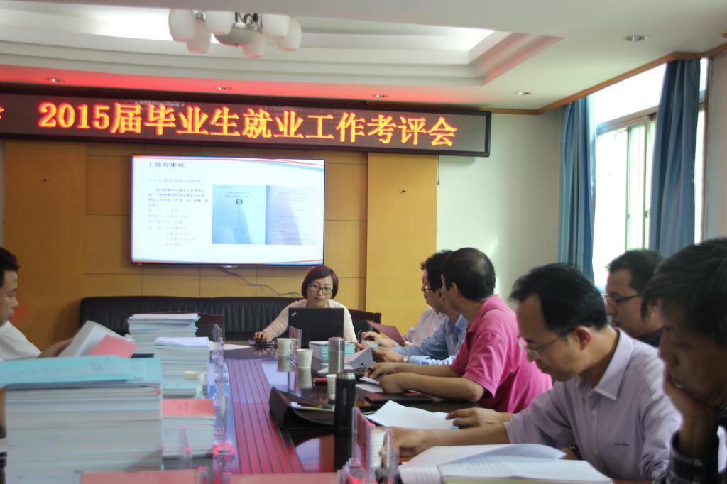 考评会分听取工作汇报、查看资料和综合评分三个环节。各二级学院依次对本学院2015届就业工作的总体情况、工作成效、特色创新、存在问题和对策做了汇报,并着重介绍了在促进帮扶毕业生就业、指导毕业生创业等方面工作的创新机制和做法。考评小组成员认真听取了各学院的汇报,仔细查阅了各学院的就业工作自评报告及支撑材料,并严格按照考核指标体系进行了综合评分。最终将根据打分结果评选出一等奖1个、二等奖2个、三等奖2个、鼓励奖5个,及2015年就业工作先进个人若干。
