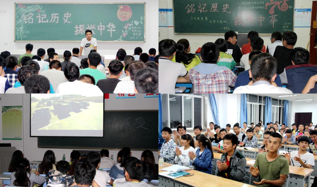 9月16日晚,数控工程学院开展纪念“九一八”事变84周年主题班会,各班团支部干部结合“九一八”事变的历史,从屈辱的历史积淀沉痛的教训、奋斗的历史升华伟大的精神、胜利的历史昭示前进的方向三个层面,为同学们进行主题班会的宣讲。在交流发言中,同学们纷纷发言表示,要牢记历史,不忘国耻,汲取“落后就要挨打”的历史教训,作为当代大学生要勇敢担负起时代赋予的重任,把强烈的爱国情感融入到勤奋的学习和工作中,以大局为重,理性表达自己的爱国热情,坚守文明法治的底线,用文明理性展现中国力量。班会后,各班同学依次在“铭记历史、勿忘国耻、理性报国、振兴中华”的横幅上郑重签名。