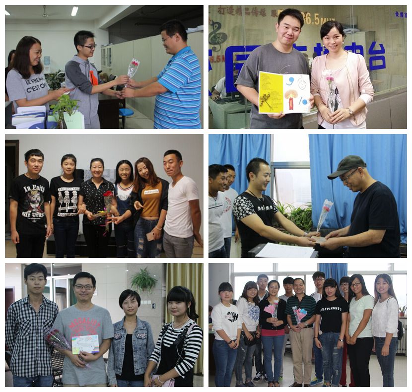 节日当天,社团联合会向全校学生社团发出号召——在教师节里为敬爱的指导老师献上自己真诚的祝福:“请给恩师打一个电话、发一条短信、发一封邮件,请为恩师挑一束鲜花、做一张贺卡、请为恩师献上一个灿烂的笑脸,加上一声真挚的问候!”同时,他们还以横幅的形式代表全院同学向敬爱的老师献上教师节的问候:“老师,教师节快乐!祝您永远健康、幸福!”在社团联合会的倡导下,协会同学纷纷通过送花、写贺卡、写邮件、发短信等方式向指导教师传递了莘莘学子们最真诚的祝福,并一起度过了一个温暖贴心的教师节。