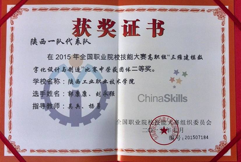 乐游棋牌学生获全国职业院校技能大赛三维建模数字化设计与制造赛项团体二等奖