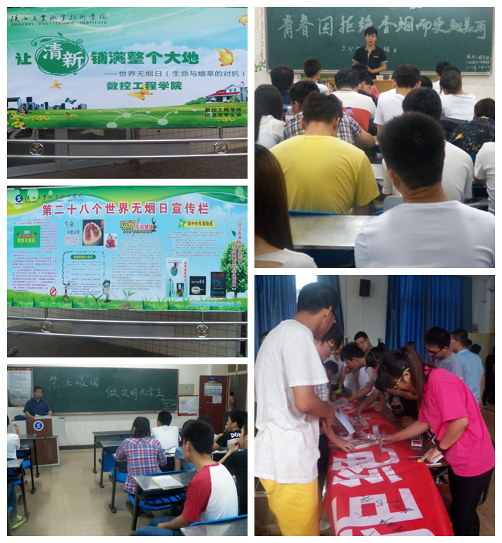 在第28个世界无烟日到来之际,为进一步推进控烟工作深入开展,提高全校师生对吸烟危害健康的认识,促进我校禁烟目标的实现,近日,数控工程学院通过多种形式组织开展世界无烟日宣传教育活动。