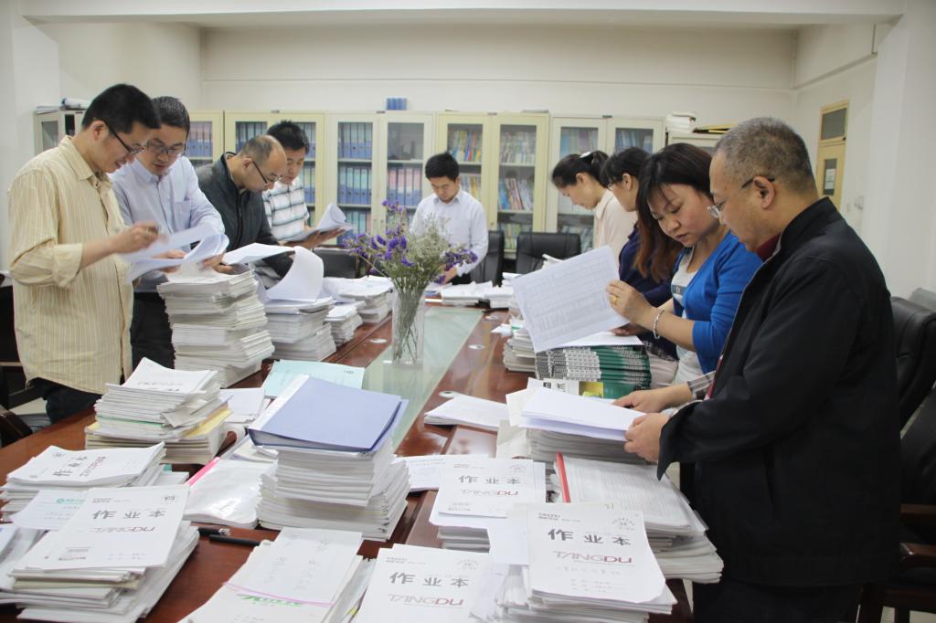 为了加强教学基础资料建设、强化教学质量管理,落实学院《关于开展2014--2015学年第二学期期中教学检查的通知》(陕工院教字【2015】5号)文件精神,5月7日下午,信息工程学院院长何玉辉带领期中教学检查工作小组对该院专兼职教师的日常教学资料进行了集中检查,检查工作在崇文楼806室进行。